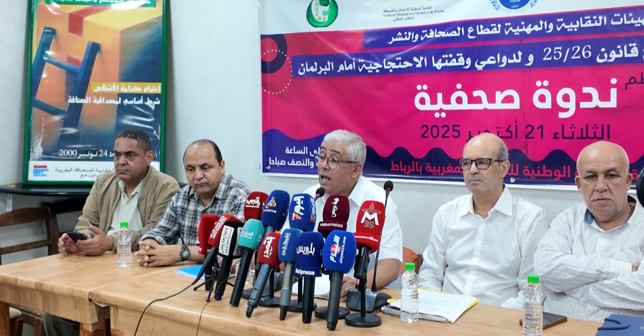 تقرر تنظيم ندوة صحفية بمقر النقابة الوطنية للصحافة المغربية بالرباط، وذلك يوم الخميس 09 أبريل 2026 صباحًا، ابتداء من الساعة العاشرة والنصف صباحا(10h30)، لتقديم مذكرة ترافعية بخصوص مشروع القانون رقم 09.26 المتعلق بإعادة تنظيم المجلس الوطني للصحافة.