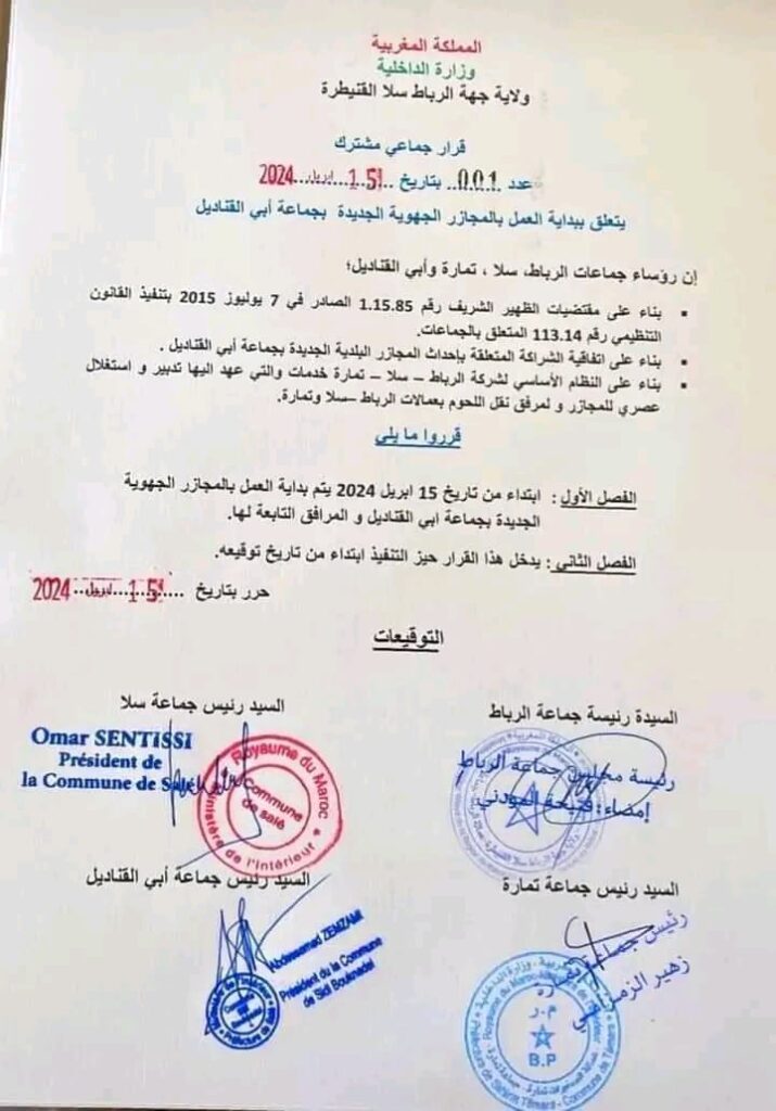 وأشار البلاغ إلى أن المجازر الجهوية الجديدة ستبدأ في الاشتغال في غضون الأيام القليلة المقبلة، وسيتم تسييرها من طرف الشركة المحلية للتنمية “رباط سلا تمارة للخدمات والتنمية”.