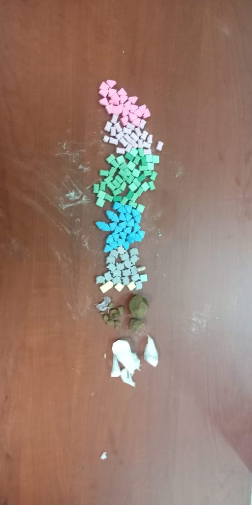 وبعد تفتيش منزل شريكته التي تبلغ من العمر 22 سنة، تمكنت عناصر الدرك الملكي من العثور على كمية من أقراص مهلوسة و مهيجة عبارة عن 140 قرص من نوع اكستاسي و روفتريل و 4 غرامات من الكوكايين ومبلغ مالي.