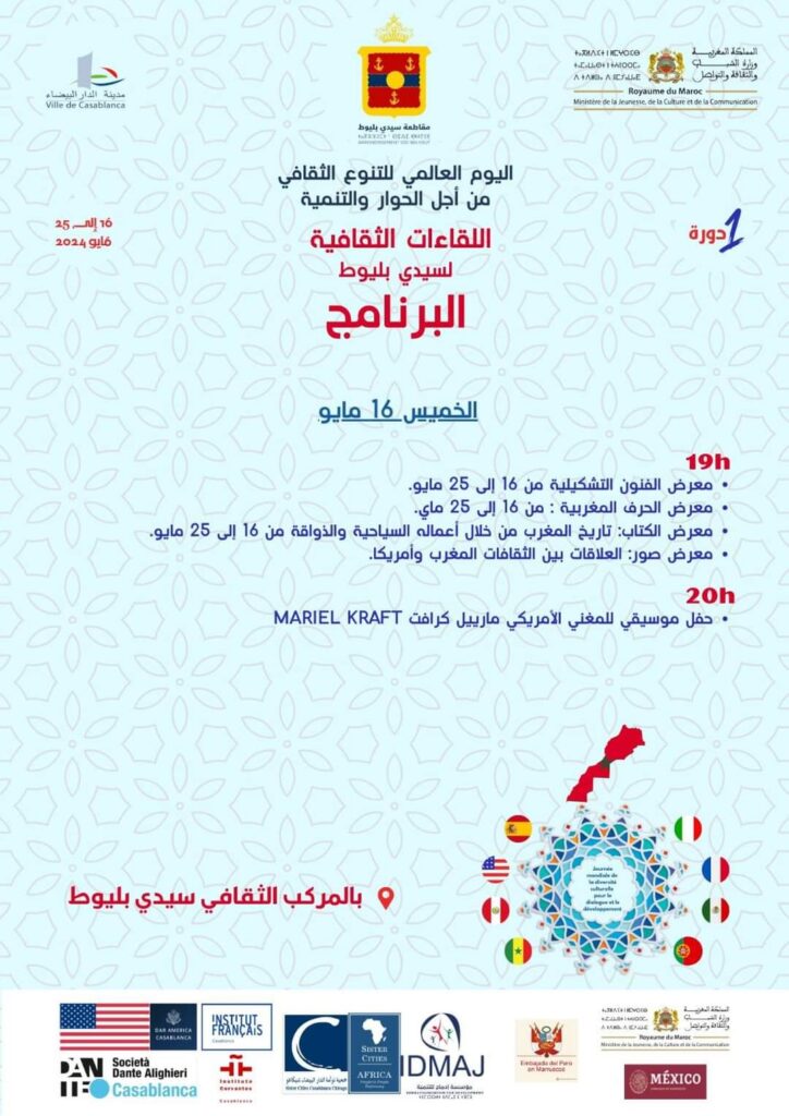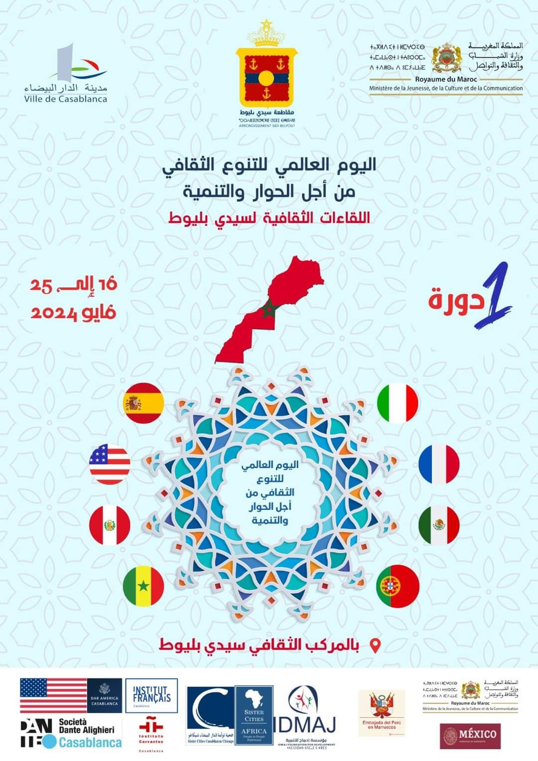 تحتضن مدينة الدارالبيضاء ما بين 16 و25 ماي فعاليات الاحتفاء باليوم العالمي للتنوع الثقافي من أجل الحوار والتنمية، في إطار أول ملتقى ينظم بالمناسبة من طرف مجلس مقاطعة سيدي بليوط، تحت عنوان الملتقيات الثقافية لسيدي بليوط .