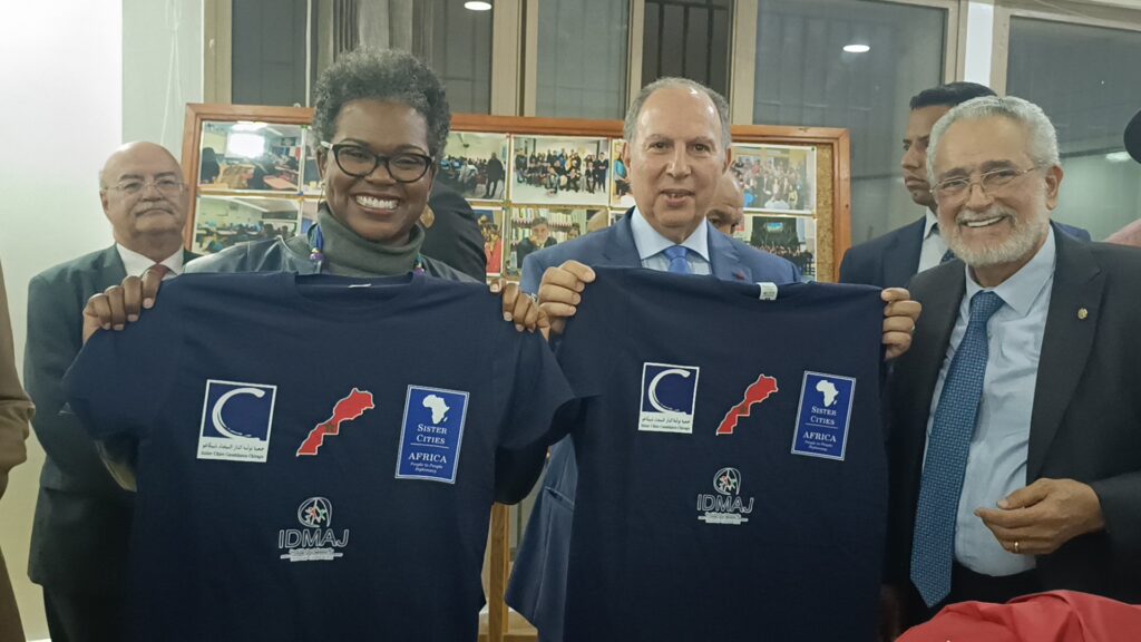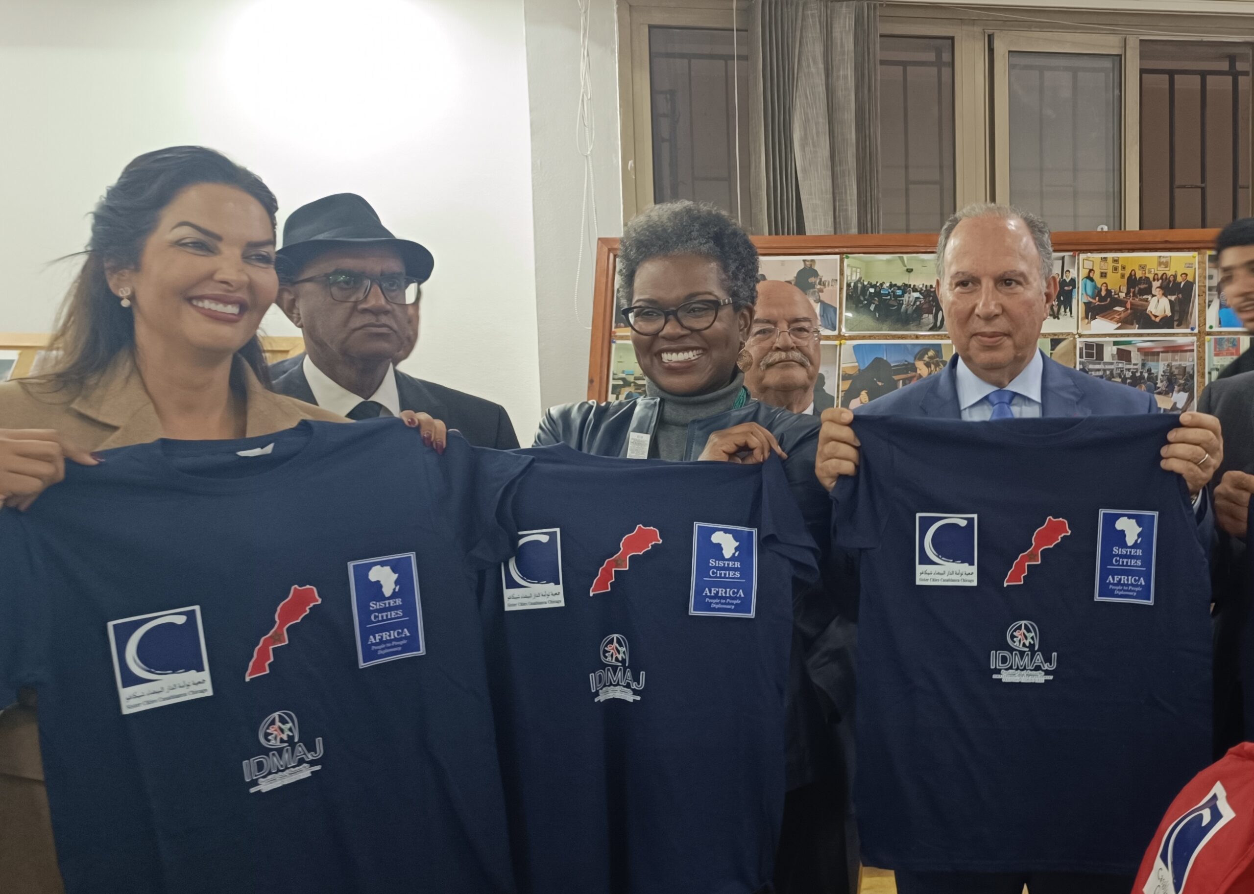 بدت ماريسا سكوت القنصل العام للولايات المتحدة الأمريكية بالدار البيضاء، مساء أمس الخميس، سعيدة وفرحة بتلقيها هدية عبارة عن قميص رياضي يحمل خريطة المغرب كاملة من طنجة إلى الكويرة، أثناء زيارتها لمعرض الصور بين الثقافات المغرب وامريكا، رفقة عزيز دادس عامل مقاطعات الدارالبيضاء أنفا، وكنزة الشرايبي رئيسة مقاطعة سيدي بليوط، وأحمد بريجة رئيس مجلس عمالة الدارالبيضاء.