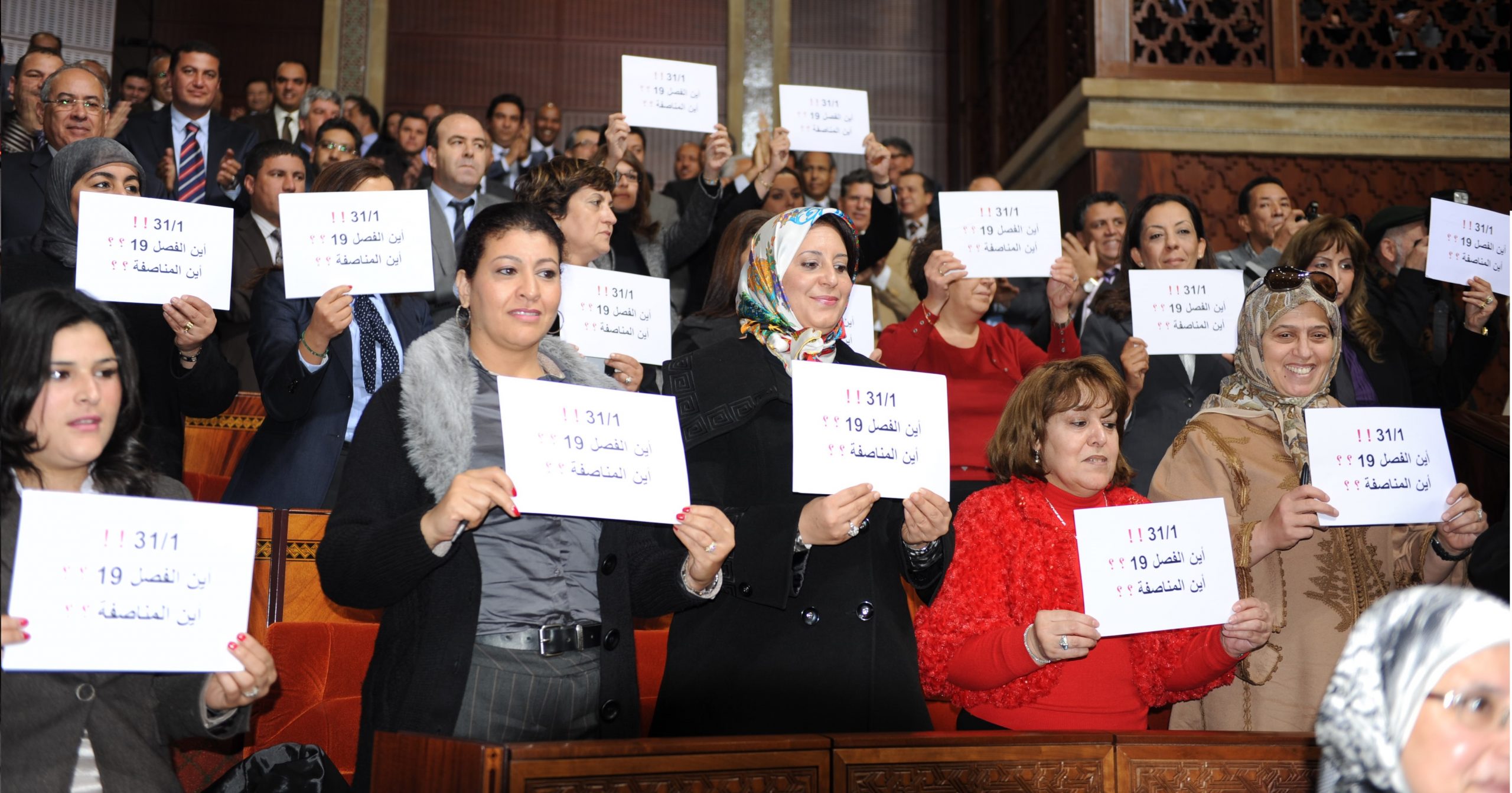 واعتبرت جمعية التحدي للمساواة والمواطنة، في بيانها الصحفي أن المدخل الرئيسي للتنزيل الفعلي لنص دستور سنة 2011، لاسيما الفقرة الثانية من الفصل 19 التي تنص على أنه: ( .. تسعى الدولة إلى تحقيق مبدإ المناصفة بين الرجال والنساء.) وكذا الفقرة الأولى من الفصل 30 التي تنص على أنه: ( وينص القانون على مقتضيات من شأنها تشجيع تكافؤ الفرص بين النساء والرجال في ولوج الوظائف الانتخابية.)، يتجلى في ما يلي :