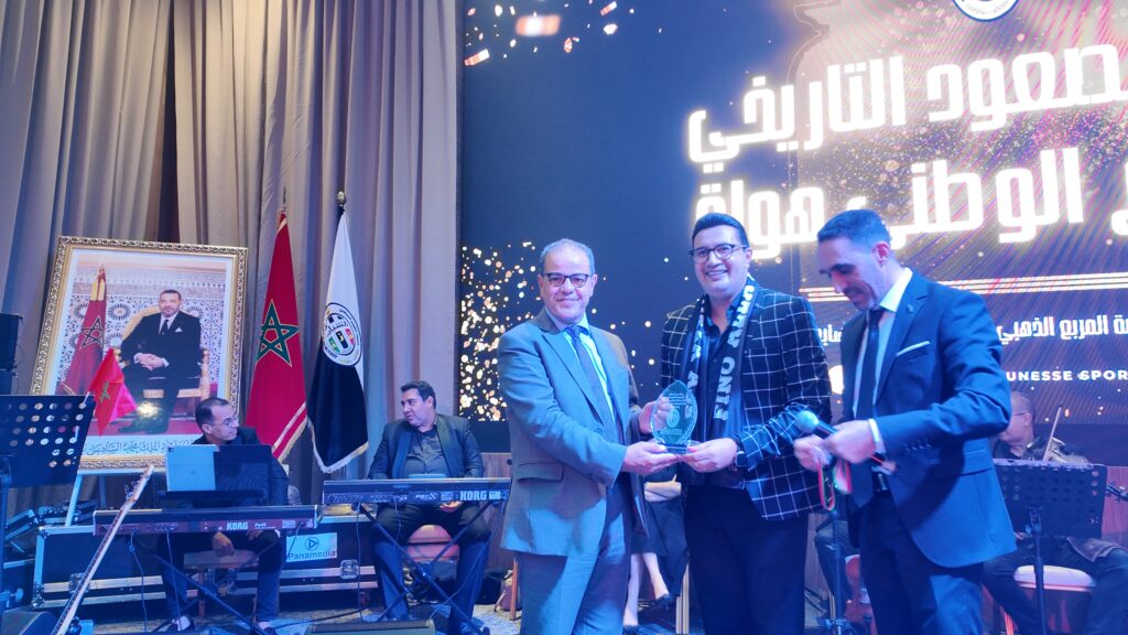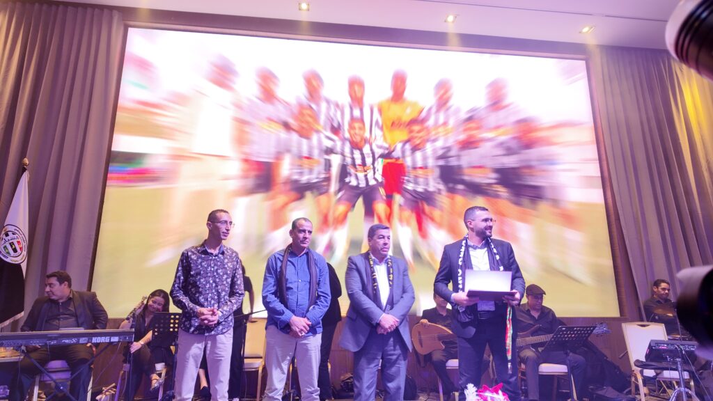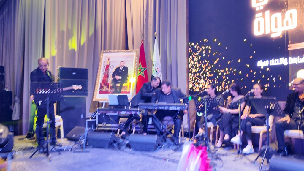 وإنطلق الحفل الفني بتحية العلم، وبإلقاء الكلمات، ثم تقديم فقرات غنائية متنوعة من طرف المجموعة الغنائية وفقرات غنائية من أداء الفنان عبد العالي أنور، التي ألهبت حماس الجمهور، وكشف عبد اللطيف الناصري، بعد إنهاء الفنان عبد العالي أنور لوصلته الغنائية بان الفنان أتى إلى الحفل بمبادرة شخصية منه للاحتفاء مع النادي وغنى من دون أي مقابل، وتم تسليم بالمناسبة تذكار و”شال” الفريق للفنان أنور نظرا مساهمته.