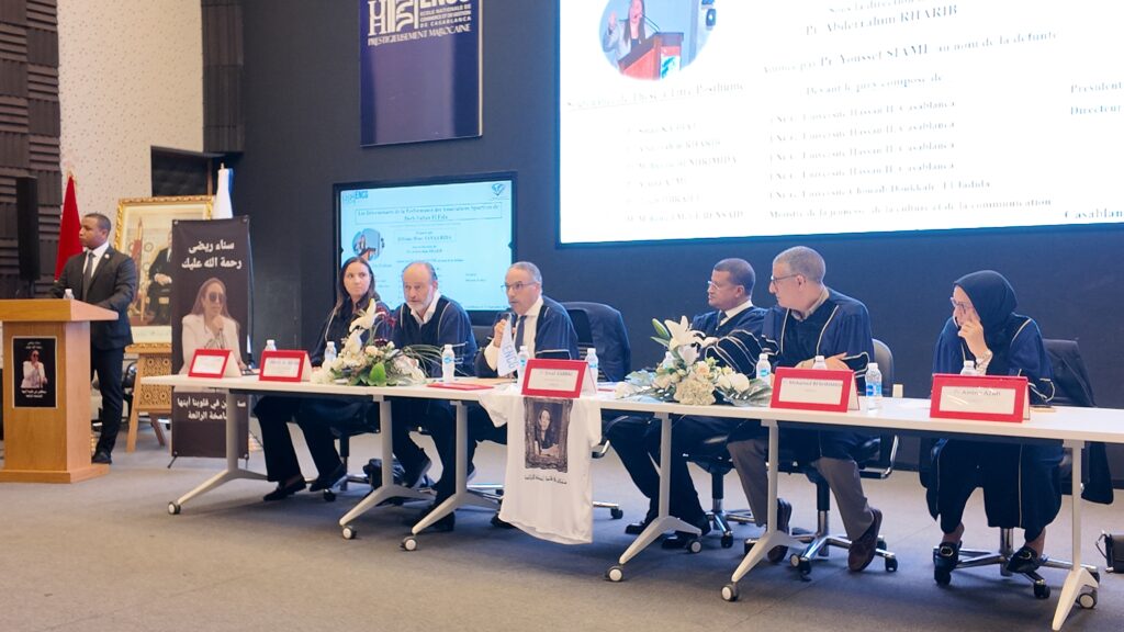 وكانت الرحلة تعد أطروحة الدكتوراه حول موضوع “محددات أداء الجمعيات الرياضية في درب السلطان الفداء” وفي مبادرة رمزية جرى اليوم مناقشتها في مدرج الكبير للمدرسة الوطنية للتجارة والتسيير بالدارالبيضاء، من طرف لجنة تتكون من مدير بالنيابة للمدرسة وكاتب عام، قطاع الشباب بالوزارة، والاستاذ المشرف على الأطروحة وأساتذة سبقوا أن درسوها في سلك الماستر.