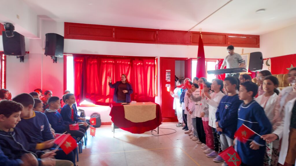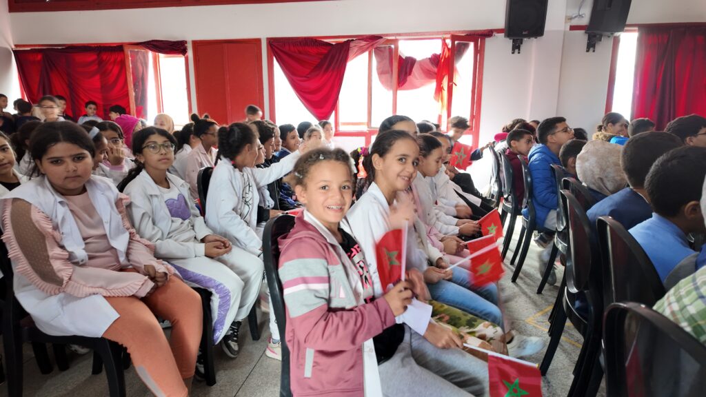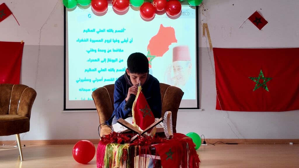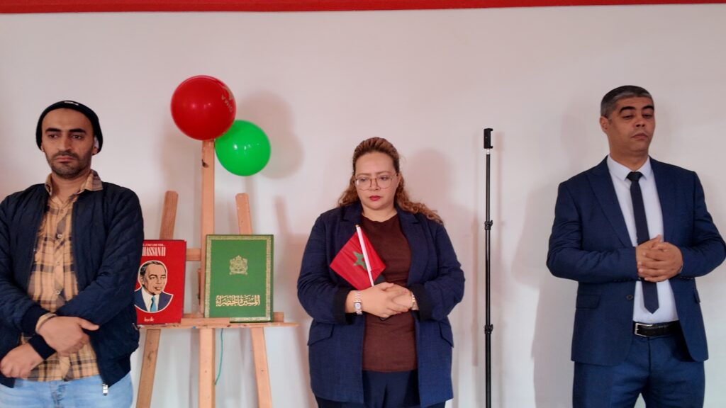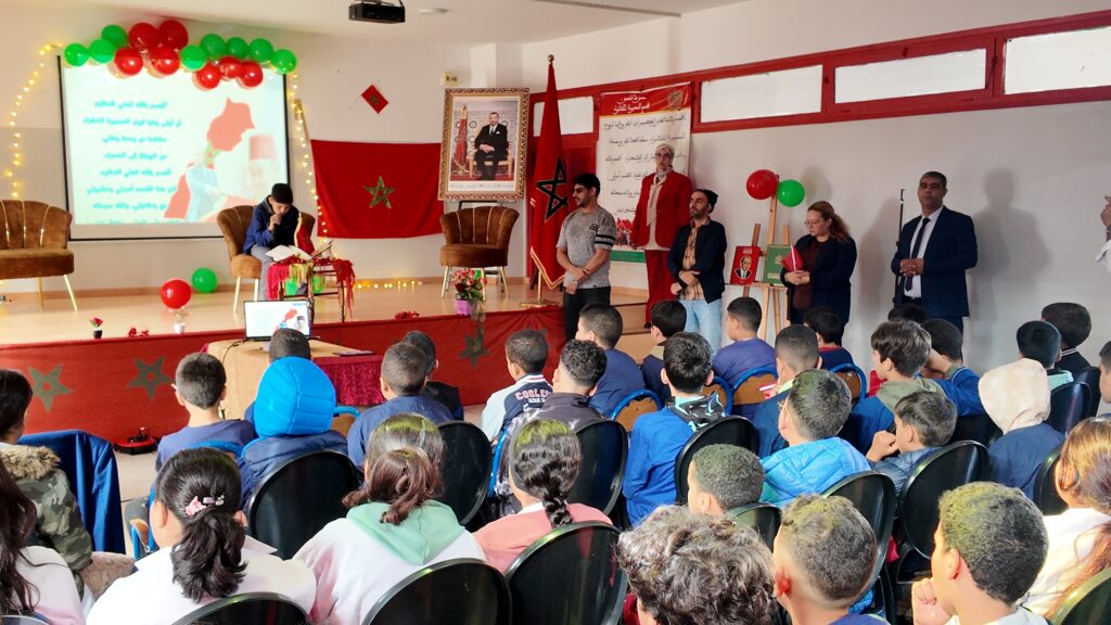وانطلق الحفل الذي تضمن فقرات متنوعة، بتلاوة آيات بينات من الذكر الحكيم، تلاها ترديد النشيد الوطني، ثم أداء قسم المسيرة الخضراء، قبل أن يؤدي مجموعة من التلميذات والتلاميذ الاغاني والاناشيد الوطنية.