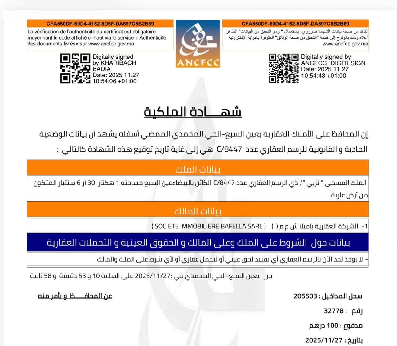وفي مراسلة موجهة من نبيلة الرميلي، رئيسة جماعة الدارالبيضاء إلى المحافظ العقاري وتحمل توقيع حسين نصر الله، النائب المفوض له قطاع الممتلكات تطالبه فيها بتقديم توضيحات حول نقل ملكية ارض من الجماعة الى الشركة العقارية.